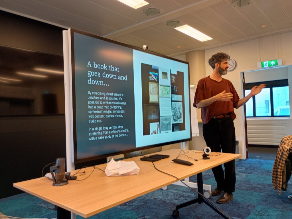 Along with Julien McHardy and author James Louis Smith, Simon Bowie organised a one-day workshop ‘Markdown, Dive Deep‘, at the Koninklijke Bibliotheek in Den Haag on 23 May 2025. The workshop was run as part of the Open Book Futures Experimental Publishing Group pilot project, Deep Maps: Blue Humanities, and brought together a group of writers, makers, and publishers to explore using Markdown writing and publishing workflows for experimental digital monographs. The event also included a 90 minute hybrid session (recording available here) sharing the results of our research and discussions with interested writers & publishers joining online. Simon will also be presenting a paper on 4 June at the Edinburgh Open Research Conference 2025 called ‘small changes: taking back control of research through open software’ to discuss the use of proprietary software as part of open research and how using open source software as part of the research process can be a small change that leads towards larger divestment from expensive corporate software. Following the conference, the full text of Simon’s paper will be available at https://opensauce.simonxix.com/eor2025